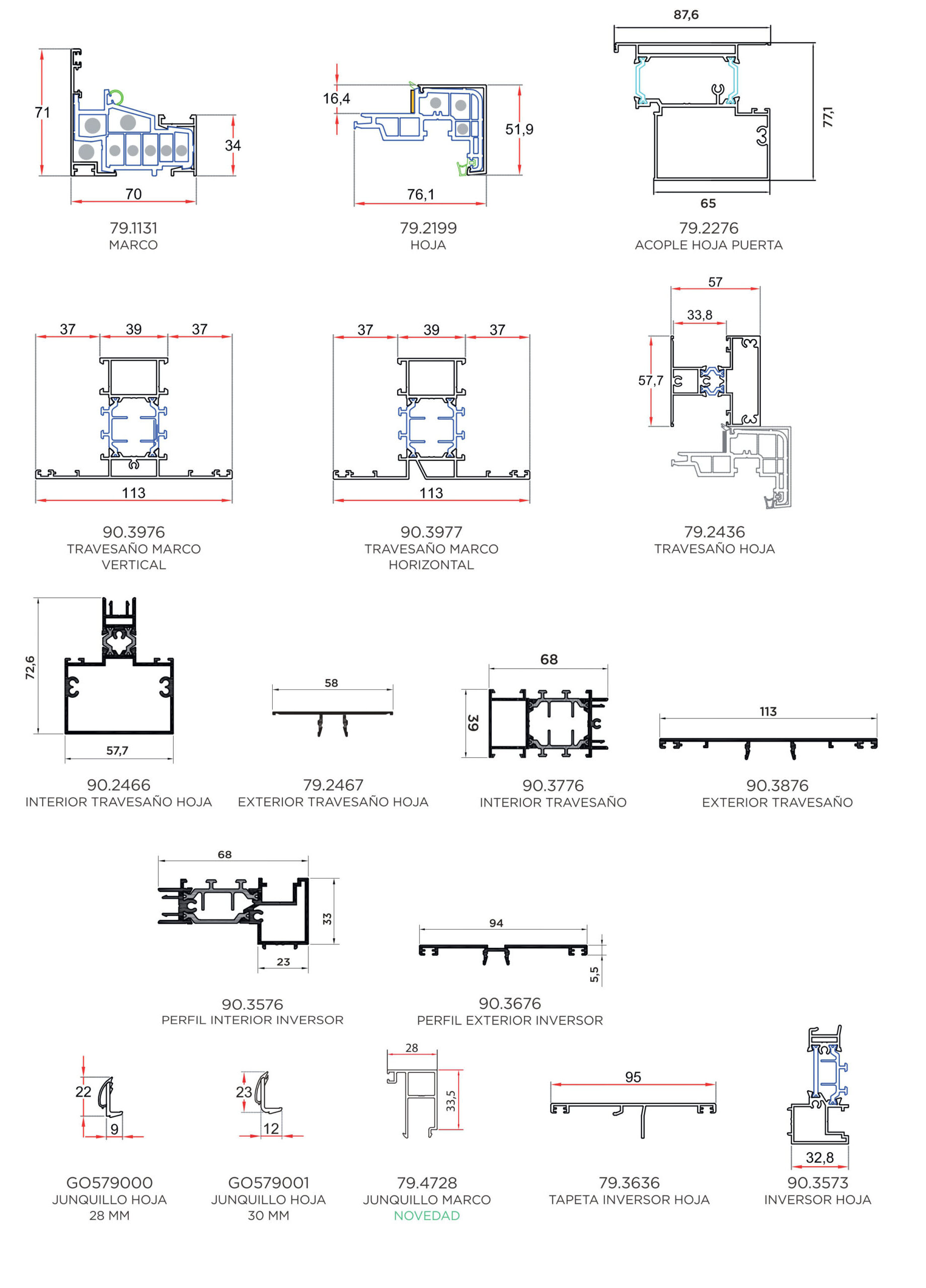 Sección de marco: 70 mm.